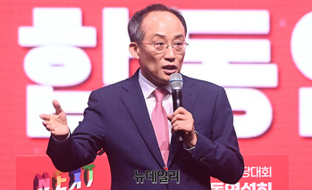 추경호 국민의힘 원내대표가 12일 오후 대구 북구 엑스코에서 열린 '제4차 전당대회 대구·경북 합동연설회'에서 인사말을 하고 있다. 국민의힘은 23일 일산 킨텍스에서 전당대회를 개최할 예정이다. (대구=서성진 기자)