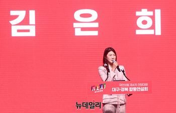 김은희 국민의힘 청년최고위원 후보가 12일 오후 대구 북구 엑스코에서 열린 '제4차 전당대회 대구·경북 합동연설회'에서 정견발표를 하고 있다. 국민의힘은 23일 일산 킨텍스에서 전당대회를 개최할 예정이다. (대구=서성진 기자)