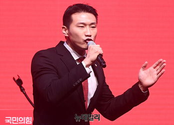 진종오 국민의힘 청년최고위원 후보가 12일 오후 대구 북구 엑스코에서 열린 '제4차 전당대회 대구·경북 합동연설회'에서 정견발표를 하고 있다. 국민의힘은 23일 일산 킨텍스에서 전당대회를 개최할 예정이다. (대구=서성진 기자)