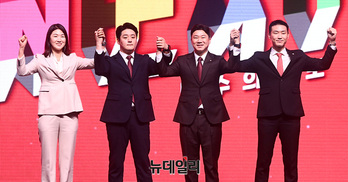 김은희, 김정식, 진종오, 박상현 국민의힘 청년최고위원 후보가 12일 오후 대구 북구 엑스코에서 열린 '제4차 전당대회 대구·경북 합동연설회'에서 정견발표를 하고 있다. 국민의힘은 23일 일산 킨텍스에서 전당대회를 개최할 예정이다. (대구=서성진 기자)