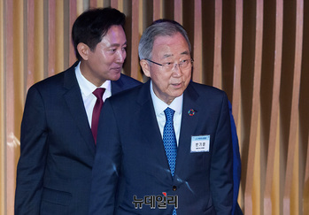 김영호 통일부 장관, 오세훈 서울시장, 반기문 전 유엔 사무총장이 11일 오후 서울시청에서 '자유를 향한 여정, 북한이탈주민과의 동행'을 주제로 열린 '2024 북한인권 서울포럼'에 참석해 자리하고 있다.이번 포럼은 북한 주민의 삶과 인권 실상을 시민들에게 알리고 북한