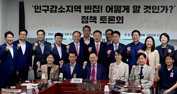 추경호 국민의힘 원내대표 및 참석자들이 11일 오후 국회 의원회관에서 열린 '인구감소지역 빈집! 어떻게 할 것인가?' 정책 토론회에 참석해 기념촬영을 하고 있다.