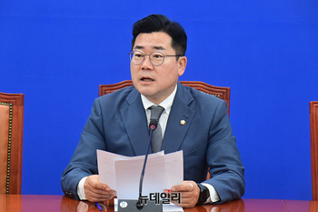 박찬대 더불어민주당 당대표 직무대행 겸 원내대표가 11일 오전 국회에서 열린 정책조정회의에서 발언을 하고 있다. 이날 박 직무대행은 도이치모터스주가조작 사건 공범인 이모 씨가 '임성근 전 해병대 1사단장 구명로비 녹취록'에서 등장한 'VIP'를 두고 김계환 해
