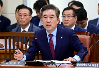 이상민 행정안전부 장관이 11일 오전 국회에서 열린 행정안전위원회 전체회의에 출석해 업무보고를 하고 있다.