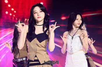 걸그룹 드림캐쳐 지유가 10일 오후 서울 강남구 일지아트홀에서 열린 미니 10집 '버추어스(VirtuouS)' 발매 기념 쇼케이스에서 포즈를 취하고 있다.이번 앨범은 타이틀곡 '저스티스(JUSTICE)'를 포함해 '인트로 : 7' 드림캐쳐(intro : 7' Dream