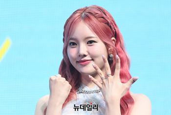 걸그룹 위클리 지한이 9일 오후 서울 마포구 신한 SOL 페이 스퀘어에서 열린 미니6집 '블리스(Bliss)' 발매 기념 쇼케이스에서 포즈를 취하고 있다.이번 앨범은 타이틀곡 '라이츠 온(LIGHTS ON)' 을 포함해 '트웬티스(Twenties)' '댄스 댄스 댄스!