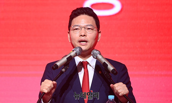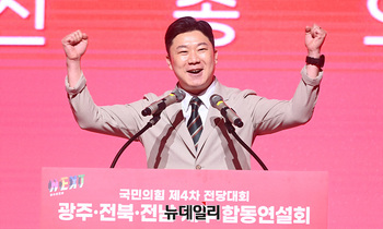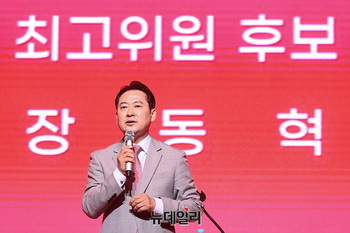 장동혁 국민의힘 최고위원 후보가 8일 오후 광주 서구 김대중컨벤션센터에서 열린 '제4차 전당대회 광주·전북·전남·제주 합동 연설회'에서 정견발표를 하고 있다. (광주=서성진 기자)