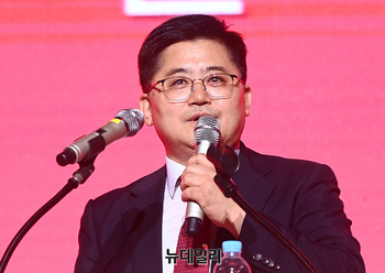 김재원 국민의힘 최고위원 후보가 8일 오후 광주 서구 김대중컨벤션센터에서 열린 '제4차 전당대회 광주·전북·전남·제주 합동 연설회'에서 정견발표를 하고 있다. (광주=서성진 기자)
