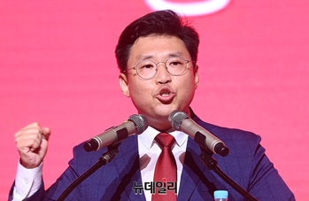박정훈 국민의힘 최고위원 후보가 8일 오후 광주 서구 김대중컨벤션센터에서 열린 '제4차 전당대회 광주·전북·전남·제주 합동 연설회'에서 정견발표를 하고 있다. (광주=서성진 기자)
