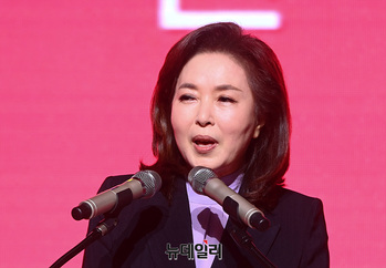 김민전 국민의힘 최고위원 후보가 8일 오후 광주 서구 김대중컨벤션센터에서 열린 '제4차 전당대회 광주·전북·전남·제주 합동 연설회'에서 정견발표를 하고 있다. (광주=서성진 기자)