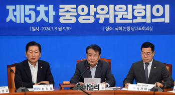 박찬대 더불어민주당 당대표 직무대행 겸 원내대표가 8일 국회에서 열린 더불어민주당 제5차 중앙위원회의에서 발언을 하고 있다.