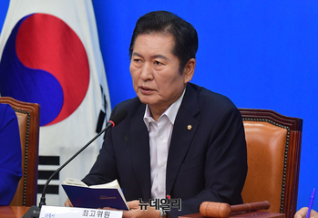 정청래 더불어민주당 최고위원이 8일 국회에서 열린 최고위원회의에서 모두발언을 하고 있다.