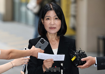 이진숙 방송통신위원장 후보자가 8일 오전 인사청문회 준비 사무실이 마련된 경기 과천시의 한 사무실로 첫 출근하고 있다. (경기 과천=정상윤 기자)