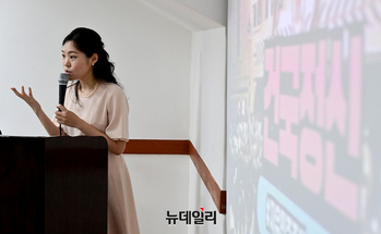 한서영 홀리원코리아 대표가 6일 오후 서울 중구 배재학당역사박물관에서 열린 2024견미단 발대식에서 '조선 개화와 정동, 그리고 이승만'을 주제로 특강을 하고 있다.견미단은 나라의 독립과 건국을 위해 90평생을 헌신한 초대 건 국 대통령 이승만의 발자취를 따라, 10대