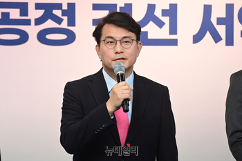 국민의힘 한동훈 당대표 후보가 5일 오후 서울 여의도 중앙당사에서 열린 '미래를 위한 약속, 공정 경선 서약식'에서 발언을 하고 있다.
