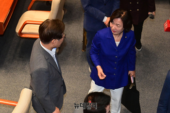 [포토] 나란히 본회의 떠나는 이재명·이언주