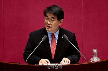 박성준 더불어민주당 의원이 3일 오후 국회에서 열린 본회의에서 의사진행 발언을 하고 있다.