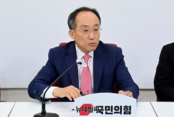 추경호 국민의힘 원내대표가 3일 오전 국회에서 현안 관련 기자간담회를 갖고 기자들의 질문에 답하고 있다.이날 추 원내대표는 "민주당은 2년 동안 13번이나 탄핵소추안을 발의한 탄핵중독 정당"이라고 비판했다.