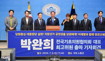 박완희 청주시의원이 3일 오전 국회 소통관에서 더불어민주당 최고위원 출마선언 기자회견을 갖고 있다.