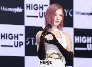 걸그룹 스테이씨 윤이 1일 오후 서울 광진구 예스24라이브홀에서 열린 첫 정규앨범 메카모르픽 출시 기념 쇼케이스에서 포즈를 취하고 있다. 데뷔 4년만에 발매한 첫 정규앨범 '메타모르픽'은 지금껏 본 적 없던 스테이씨의 새로운 매력과 진화된 콘셉트를 담은 스토리