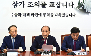황우여 국민의힘 비상대책위원장이 1일 오전 국회에서 열린 비상대책위원회의에서 발언하고 있다.
