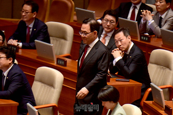 이재명 더불어민주당 전 대표와 정청래 의원이 27일 오후 서울 여의도 국회에서 열린 본회의에서 국회부의장 선거 투표를 하고 있다.