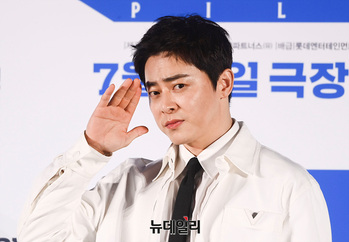 배우 조정석이 26일 오전 서울 광진구 롯데시네마 건대입구점에서 열린 영화 '파일럿(감독 김한결)' 제작보고회에서 포즈를 취하고 있다.영화 '파일럿'은 스타 파일럿에서 하루아침에 실직자가 된 한정우(조정석 분)가 파격 변신 이후 재취업에 성공하며 벌어지는 코미디를 그린
