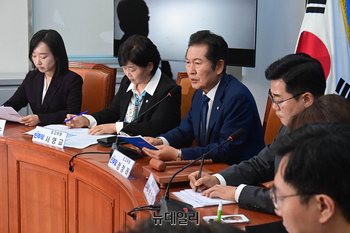 정청래 더불어민주당 최고위원이 26일 오전 국회에서 열린 최고위원회의에 참석해 모두발언을 하고 있다.