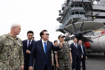 尹, 美 루스벨트 항공모함 승선 … "한미동맹 그 어느 때보다 굳건"