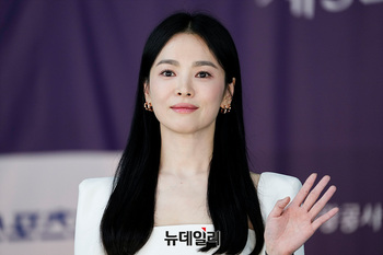 배우 송혜교가 25일 오후 인천 중구 상상플랫폼에서 열린 제3회 청룡시리즈어워즈 핸드프린팅 행사에서 포즈를 취하고 있다. (인천=서성진 기자)