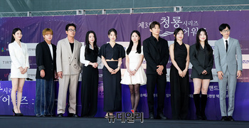 배우 송혜교, 하정우, 수지, 임지연, 박지훈, 신예은, 방송인 유재석, 배우 주현영, 덱스, 김아영이 25일 오후 인천 중구 상상플랫폼에서 열린 제3회 청룡시리즈어워즈 핸드프린팅 행사에서 포즈를 취하고 있다. (인천=서성진 기자)