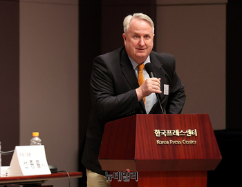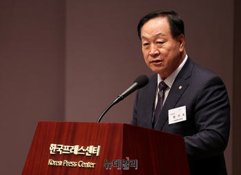 인요한 국민의힘 의원이 24일 오후 서울 중구 한국프레스센터에서 '백선엽 장군의 전쟁철학과 한미동맹'을 주제로 열린 제1회 백선엽장군기념재단 국제학술회의에서 축사를 하고 있다. 이날 학술회의는 '6.25전쟁 중의 백선엽 장군과 미군' '백선엽 장군의 전장리더십