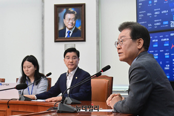 이재명 더불어민주당 대표가 24일 오전 국회에서 열린 최고위원회의서 모두발언을 하고 있다.