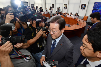 [포토] 사퇴 위해 입장하는 이재명 더불어민주당 대표