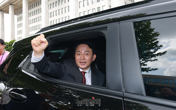 [포토] 지지자 환호속 회견장 떠나는 원희룡