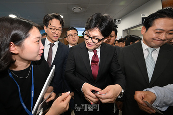 [포토] 출마선언 마치고 국회 나서는 한동훈