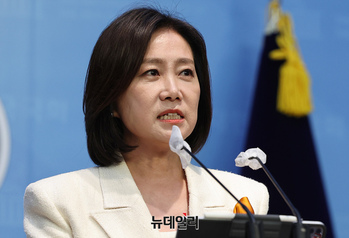 허은아 개혁신당 대표가 23일 오후 국회 소통관에서 국민의힘 전당대회 당권 주자들에게 채상병·김건희 특검법에 대해 입장을 요구하는 논평을 발표하고 있다.