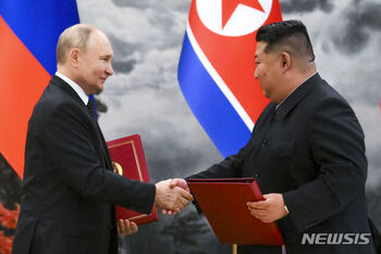 북한과 러시아의 관계가 '포괄적인 전략적 동반자관계에 관한 조약'을 계기로 사실상 '준군사동맹'으로 격상됐지만, '유사시 자동군사개입'에는 미치지 않는다는 분석이 나왔다.◆조건부 원조 제공…"자동개입 복원으로 볼 수 없어"조한범 통일연구원 석좌연구위원은 20일 한국프레