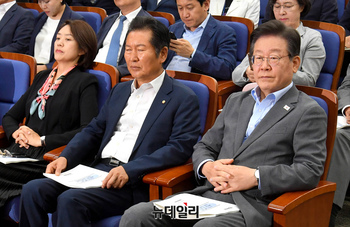 이재명 더불어민주당 대표가 20일 오후 국회에서 열린 긴급 의원총회에서 참석해 앉아 있다.