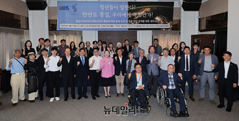 북한인권개선과자유통일을위한모임(NANK)과 한반도청년미래포럼 공동 주최로 '통일주역세대의 북한인권과 통일에 대한 현재 인식 및 향후 방안'을 주제로 열린 세미나 참석자들이 19일 오후 서울 중구 한국프레스센터에서 기념촬영을 하고 있다. 이날 세미나는 박준규 한