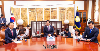 우원식 국회의장과 박찬대 더불어민주당 원내대표, 추경호 국민의힘 원내대표가 17일 오후 서울 여의도 국회의장실에서 '국회 원 구성' 관련 논의를 위해 자리하고 있다.