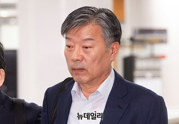 김홍희 전 해양경찰청장이 14일 오전 서울 서초구 중앙지법에서 열린 '서해 피격 은폐' 관련 공판에 출석하고 있다.