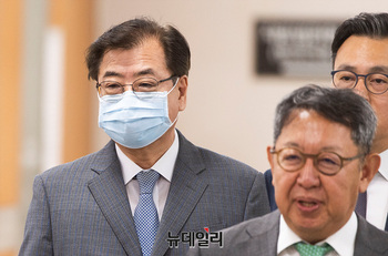 서훈 전 국가안보실장이 14일 오전 서울 서초구 중앙지법에서 열린 '서해 피격 은폐' 관련 공판에 출석하고 있다.