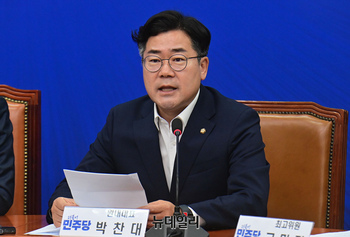 박찬대 더불어민주당 원내대표가 14일 오전 국회에서 열린 최고위원회의에 참석해 모두발언을 하고 있다. 박 원내대표는 "어제(13일) 추경호 원내대표가 순직 1주기가 되는 7월 19일 이전에 수사가 종결될 수 있도록 촉구하고 잘못이 있는 자는 지위고하