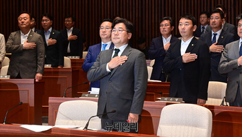 [포토] 국민의례 하는 박찬대 민주당 원내대표