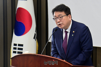 최남호 산업통상자원부 2차관이 13일 오전 국회에서 열린 국민의힘 의회정치 원상복구 의원총회에 참석해 동해 심해 가스전 개발과 관련해 브리핑하고 있다.