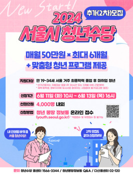 서울시가 청년들이 생활비 걱정 없이 진로 탐색에 집중할 수 있도록 돕는 청년수당 참여자 4000여 명을 추가로 모집한다. 시는 오는 11일 오전 10시부터 13일 오후 4시까지 청년정책 종합 플랫폼 '청년 몽땅 정보통'에서 청년수당 참여자 신청을 받는