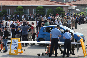 55년간 우리나라 영공을 지켜온 F-4E 팬텀의 마지막 모습을 보기 위해 세계 각지에서 모인 항공기 애호가들이 7일 오전 경기 수원공군기지에서 열린 'F-4E 팬텀 퇴역식' 입장을 위해 대기하고 있다. (사진=공동취재단)