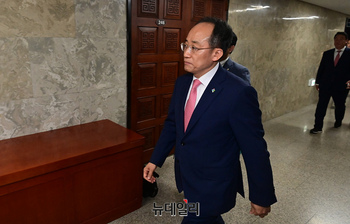 [포토] 비공개 의원총회 참석하는 추경호 원내대표