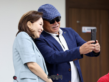 [포토] 김민전 수석대변인과 기념촬영하는 김흥국